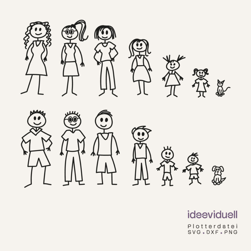Eine süße Familie aus Strichmännchen als Datei in den Formaten SVG, DXF und JPG (Download von allen drei als ZIP-Datei).